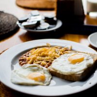 Three Eggs / Canadian Cheddar & Mozzarella / Back Bacon / Red Pepper / White & Green Onions / Crispy House Potatoes / Toasted Sourdough